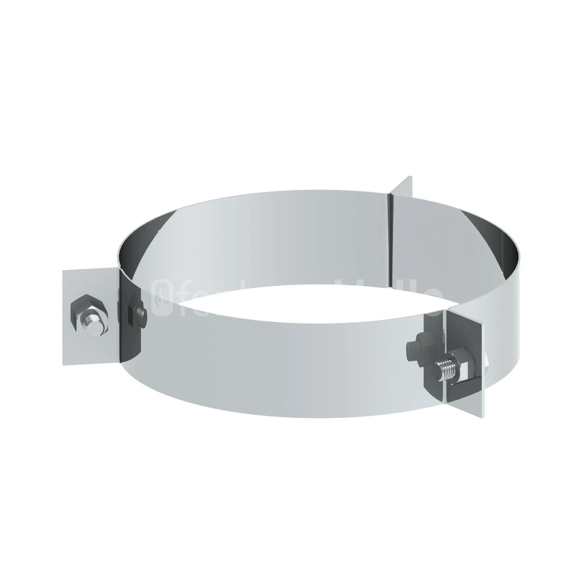 Abspannschelle für doppelwandigen Schornstein aus hochwertigem Edelstahl, mit einer Materialstärke von 0,5 mm und 25 mm Isolierung.