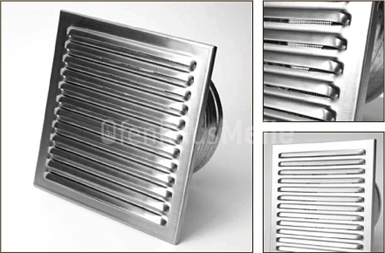 Quadratisches Außenluftgitter in Edelstahl.