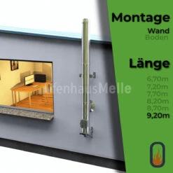| Freistehend: | max. 3 m ab dem letzten Halter |