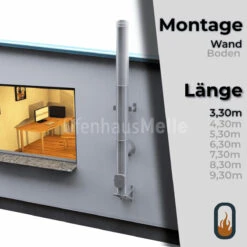 Edelstahlschornstein doppelwandig Grundbausatz DESIGN im Nenndurchmesser 130, 150, 160, 180, 200, oder 250 mm (innen) mit einer Gesamtlänge von 3,30 m.