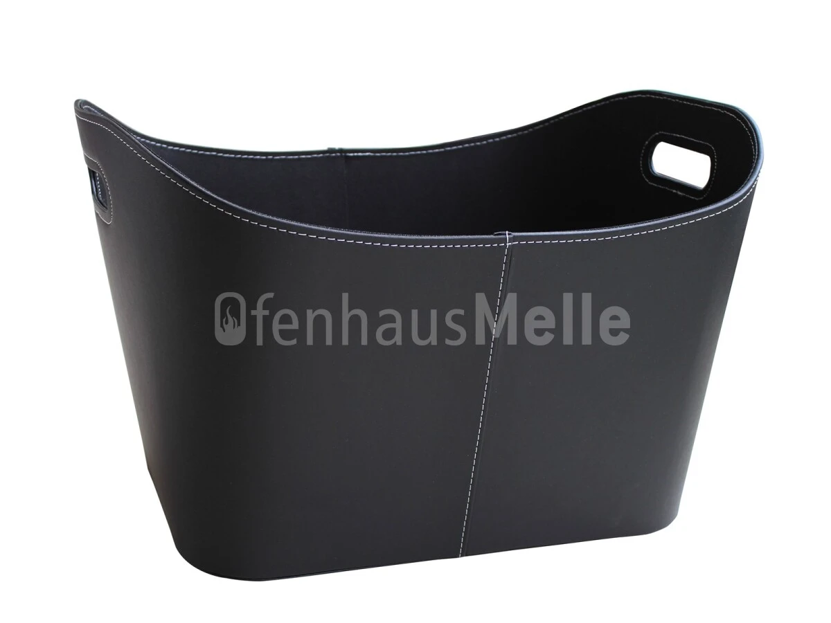 TermaTech Holzkorb in Lederoptik Schwarz – Stilvolle Aufbewahrung für Kaminholz und mehr
