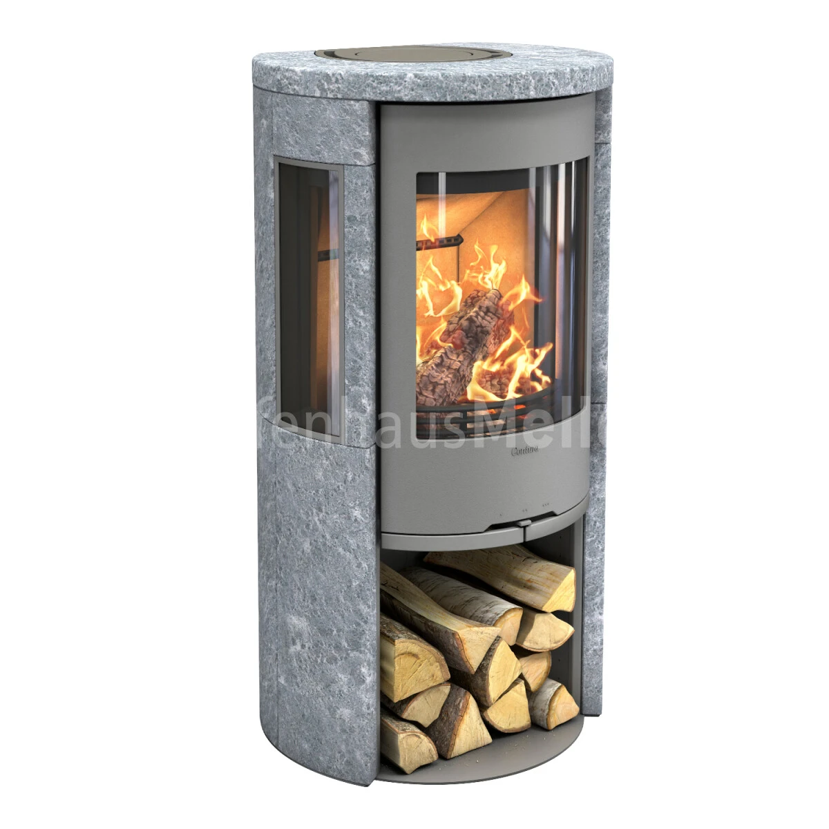 Das Style Modell des Kaminofens besticht durch eine Verkleidung aus hochwertigem Speckstein, die sich um die gesamte Seitenverglasung erstreckt. Diese Kombination verleiht dem Ofen nicht nur eine natürliche und warme Optik, sondern sorgt auch für eine großzügige Sicht auf das lodernde Feuer. Die Gusseisentür fügt sich perfekt in das Gesamtbild ein und harmoniert optimal mit dem wärmespeichernden Speckstein. Mit einer breiten Seitenverglasung ermöglicht der Kaminofen eine beeindruckende Feuersichtbarkeit und sorgt für eine angenehme Wärme in Räumen von bis zu 120 m². Mit einer Leistung von 5 kW ist er äußerst effektiv und effizient.