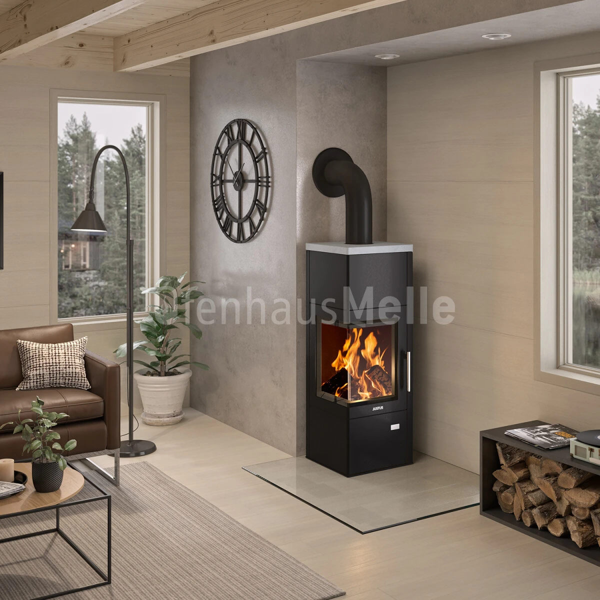 Der Justus Diego W+ vereint fortschrittliche Wärmetechnologie mit ästhetischem Design, um Ihrem Zuhause ein einzigartiges Heizerlebnis zu bieten. Erhältlich in Stahl Schwarz mit einer eleganten Abdeckplatte aus Speckstein, setzt dieser Kaminofen nicht nur auf zeitlose Eleganz, sondern auch auf innovative Funktionen. Im serienmäßigen Lieferumfang überzeugt der Diego W+ mit einer Kombi-Abdeckplatte, dem bahnbrechenden Wärmespeicher W+, einer profilierten Feuerraumauskleidung und einem luftdurchströmten Griff für bequeme Bedienung. Der serienmäßige externe Verbrennungsluftanschluss gewährleistet dabei nicht nur eine effiziente, sondern auch umweltfreundliche Verbrennung. Bitte beachten Sie, dass der Anschlussstutzen separat bestellt werden muss, um eine reibungslose Installation zu gewährleisten. Der Justus Diego W+ ist nicht nur ein Kaminofen, sondern ein Statement für modernen Komfort und nachhaltiges Heizen. Holen Sie sich mit diesem innovativen Modell die Zukunft des Wärmegenusses direkt in Ihr Zuhause!