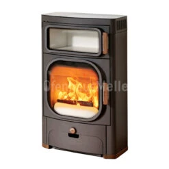 Die elegante Form des Ofens verleiht ihm ein schlankes Erscheinungsbild, das sich gut an Wände oder in Ecken anpasst.