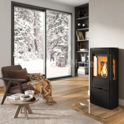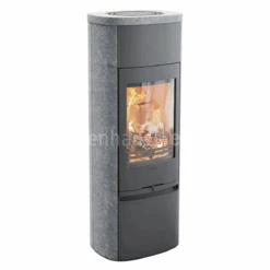 In schwarz oder grau erhältlich, präsentiert sich die Specksteinvariante der TT80-Serie und ist werkseitig mit Speichersteinen ausgestattet. Entscheiden Sie sich zwischen Konvektionswärme, Speicherwärme oder einer Kombination aus beiden. Standardmäßig verfügt der TT80 über einen Kaltgriff, einen Holzfang und eine Tür für das Holzfach. Es besteht die Option, ein Kaminbesteck und eine geformte Vorlegeplatte zu erwerben.