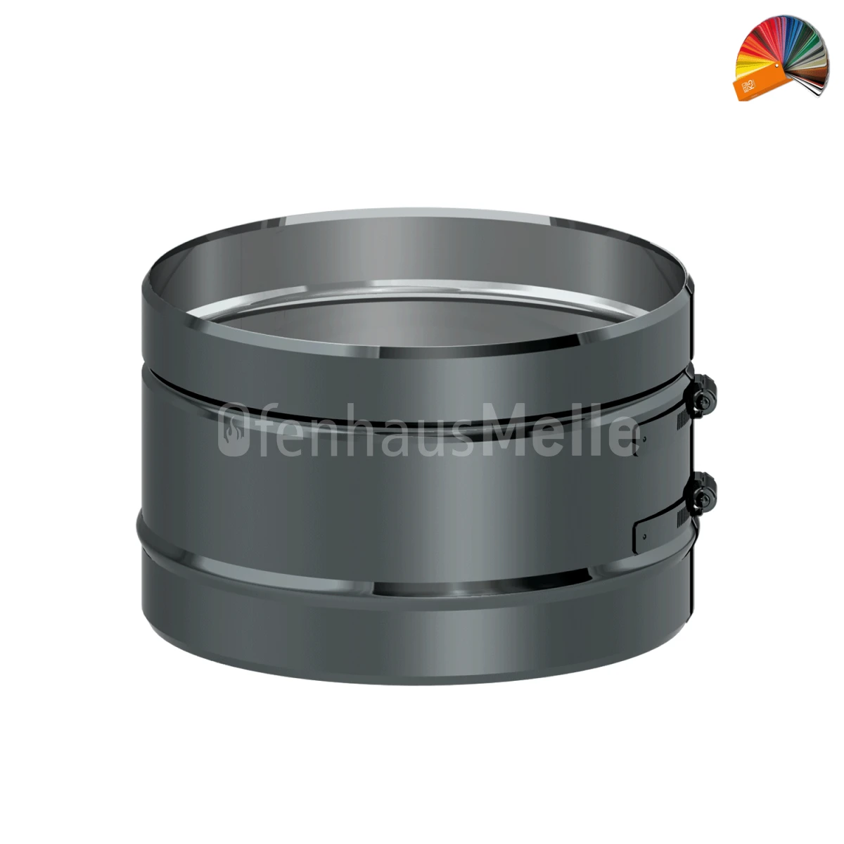 Klemmband für doppelwandigen, Pulver beschichteten, Schornstein aus hochwertigem Edelstahl, mit einer Materialstärke von 0,6 mm und 32 mm Isolierung.
