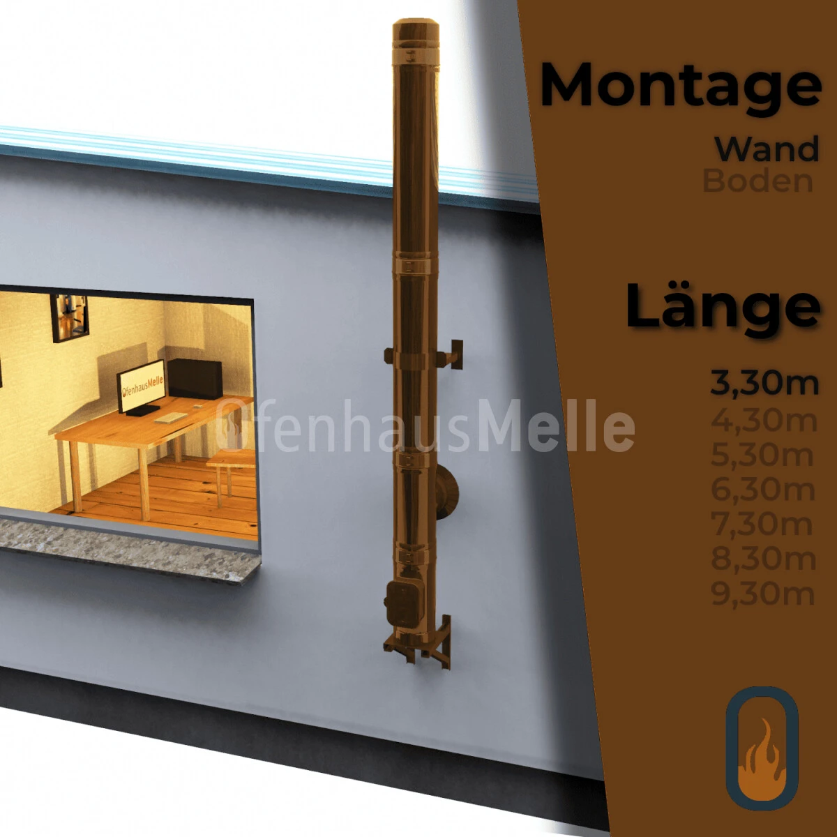 - Die Längenangabe des Schornstein-Bausatz bezieht sich auf die gestreckte Länge!