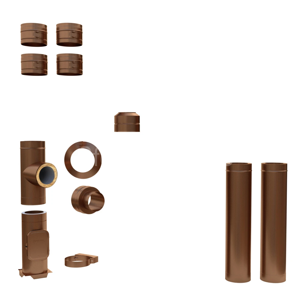 Kupferschornstein-System in doppelwandiger, wärmegedämmter Ausführung mit einer Materialstärke von 0,6 mm.