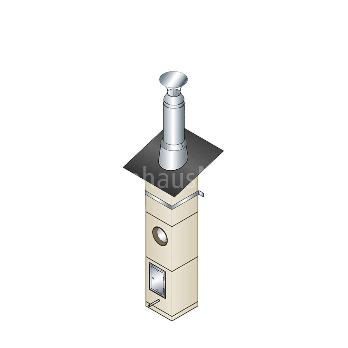 Leichtbauschornstein F90 Grundbausatz mit Silikat-Brandschutzschacht und einwandigem V4A Edelstahleinsatz im Nenndurchmesser 130 – 200mm (innen), über Dach Edelstahl doppelwandig und isoliert, mit einer Gesamtlänge von bis zu 4,50m.
