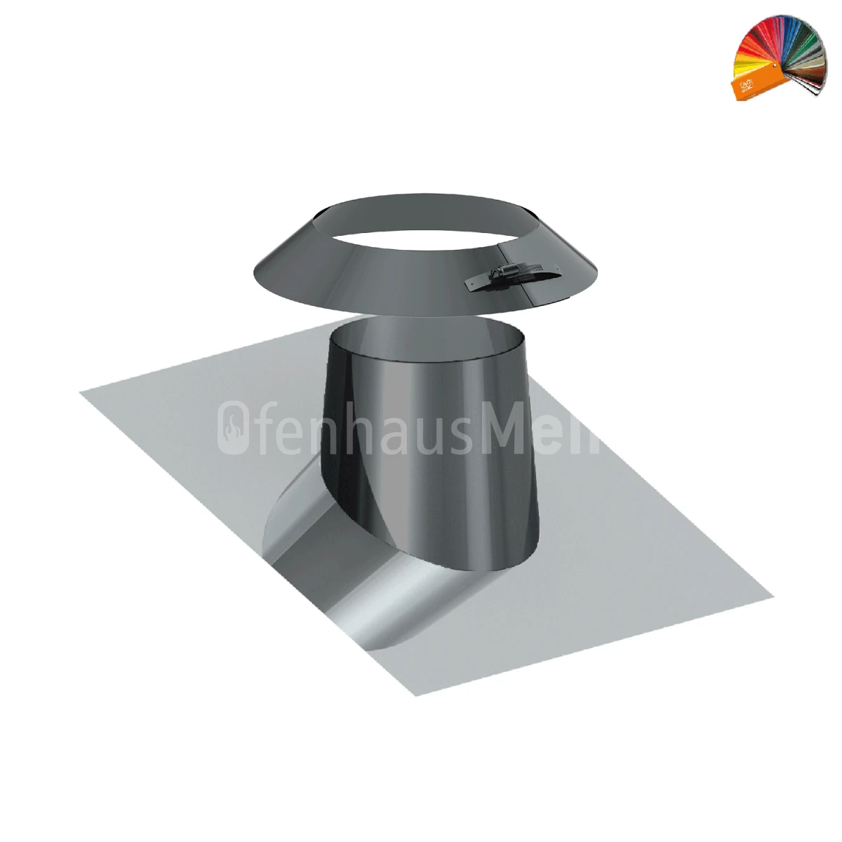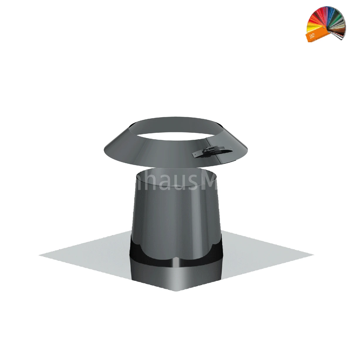 Pappdacheindichtungen mit Edelstahlflansch für doppelwandige Edelstahlschornsteine mit zusätzlichem Konus Pulverbeschichtet ähnlich RAL-Farbe nach Wahl.