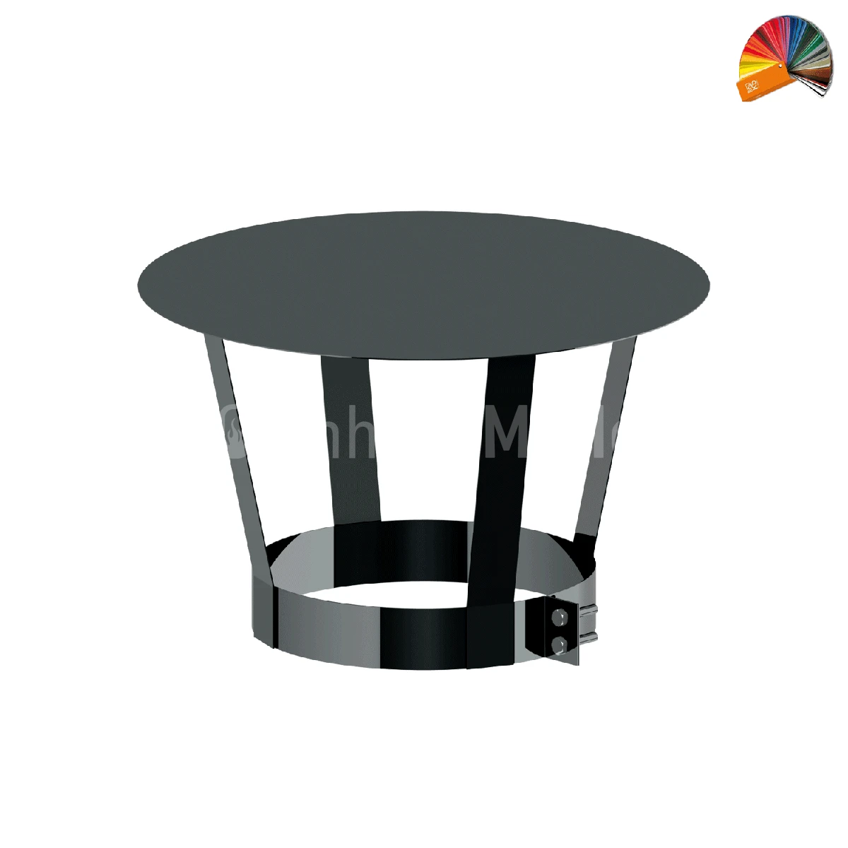 Regenhaube für doppelwandigen Pulver beschichteten Schornstein aus hochwertigem Edelstahl, mit einer Materialstärke von 0,6 mm und 32 mm Isolierung.