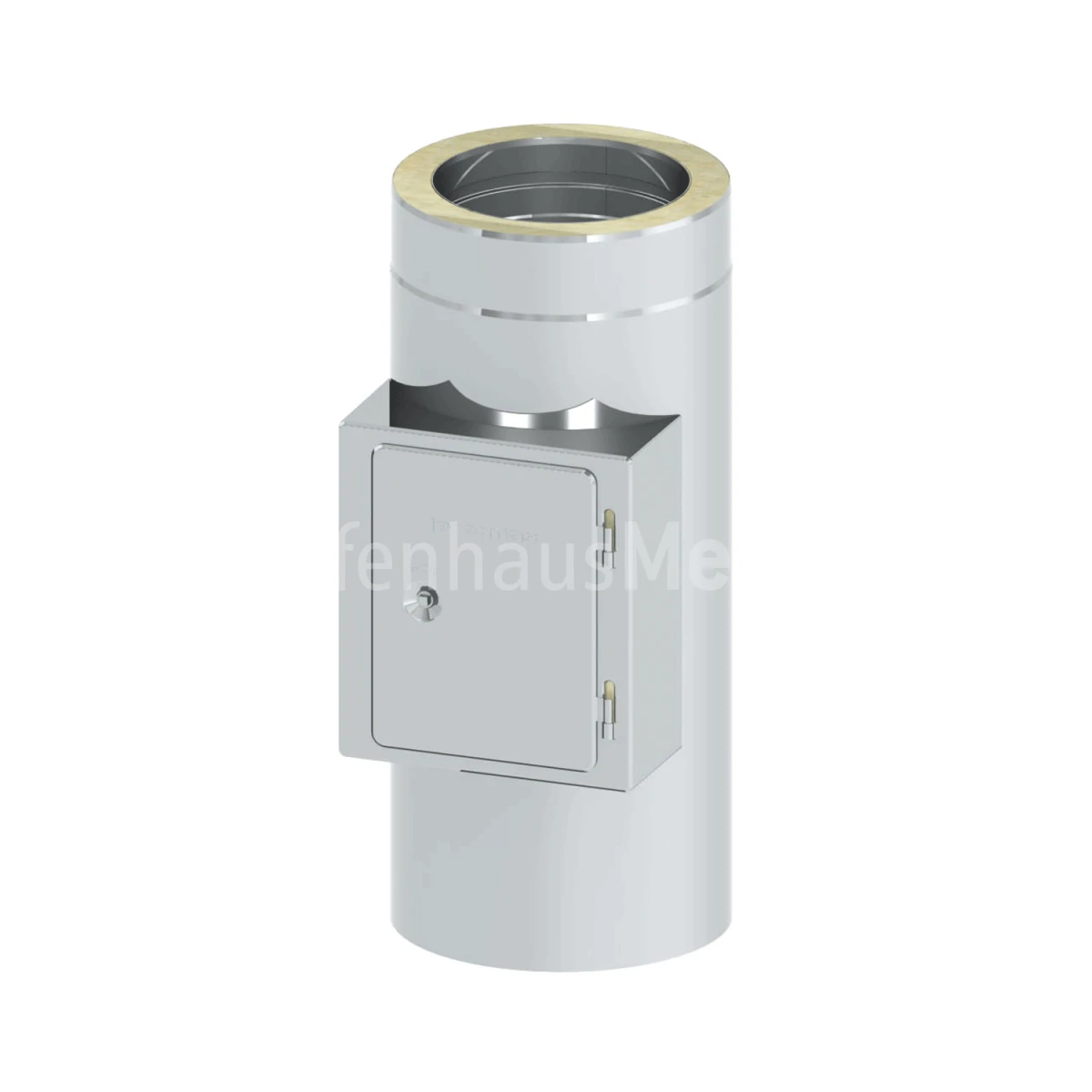 Reinigungselement mit Tür für doppelwandigen Design Schornstein aus aus hochwertigem Edelstahl, mit einer Materialstärke von 0,6 mm und 32mm mm Isolierung.
