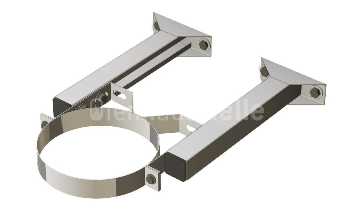 Die Verlängerungen werden seitlich an unseren Wandhalter für doppelwandige Edelstahlschornsteine montiert.